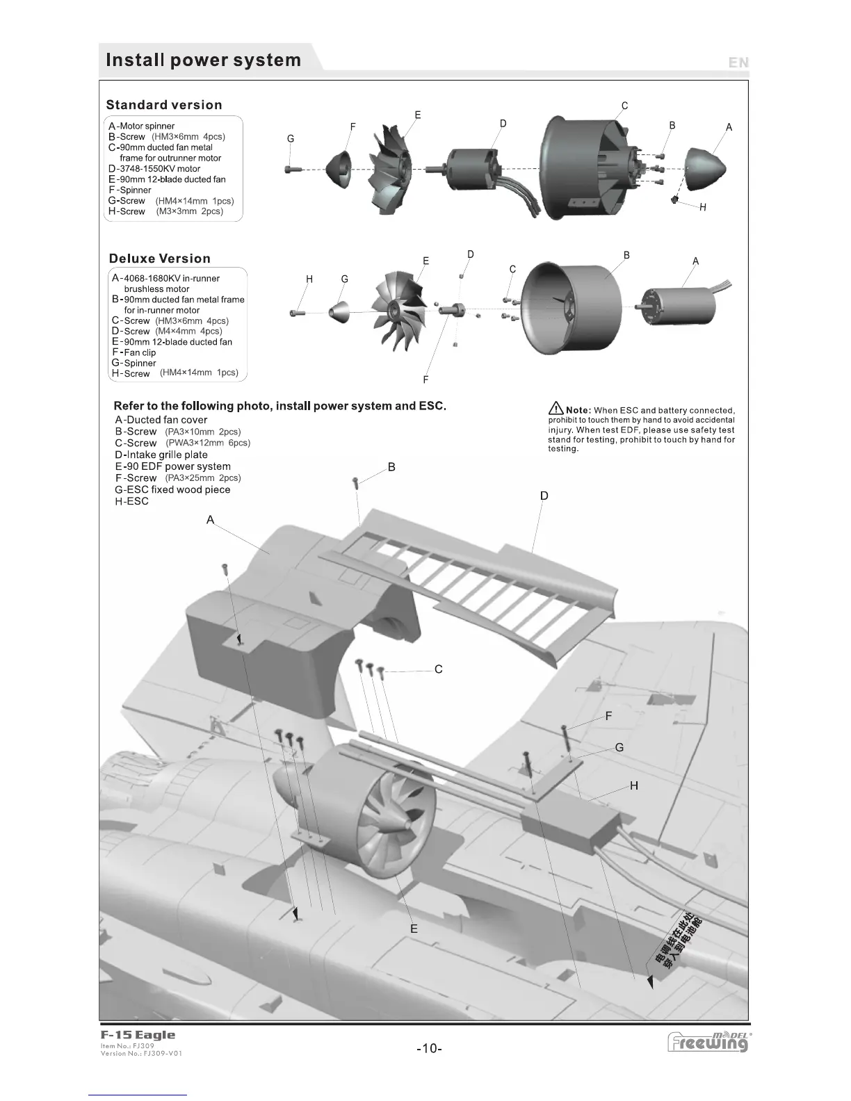 Freewing F-15 eagle - Power System Installation; Standard Version Power System; Deluxe Version Power System