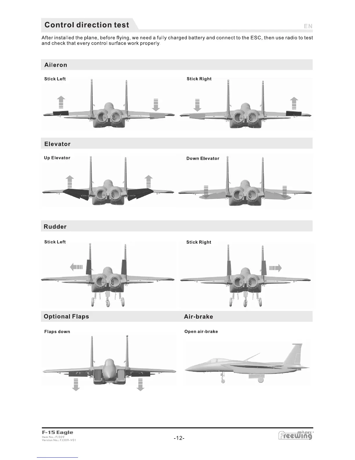 Freewing F-15 eagle - Pre-Flight Checks and Settings; Control Direction Test