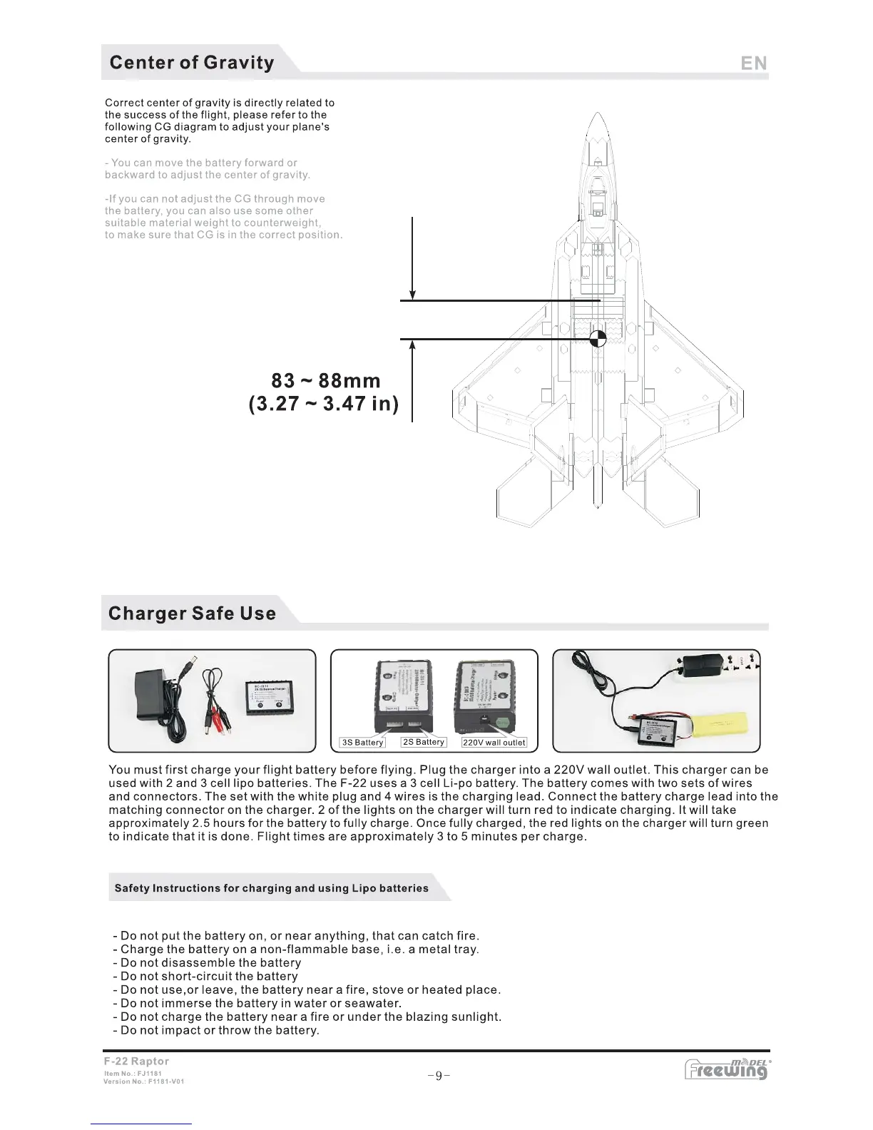 Freewing F-22 Raptor - Center of Gravity; CG Adjustment Methods; Charger Safe Use; Battery Charging Procedure