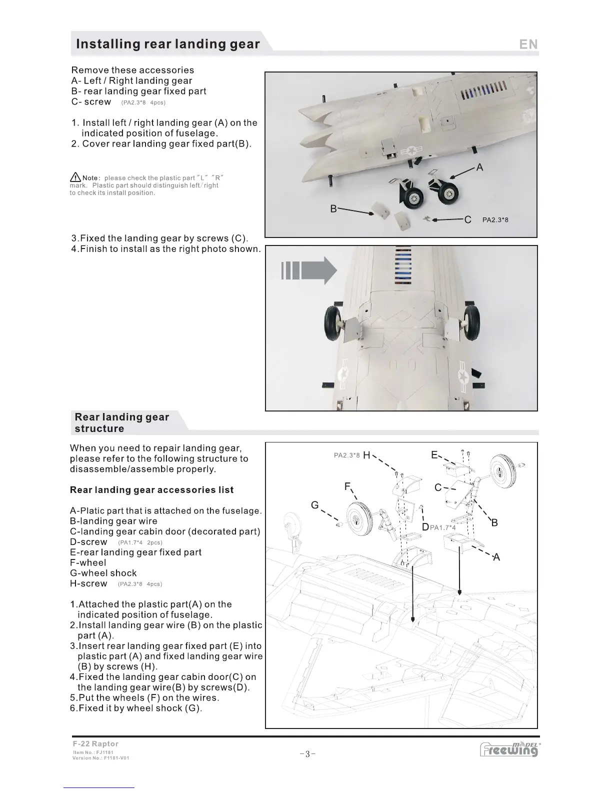 Freewing F-22 Raptor - Installing Rear Landing Gear; Rear Landing Gear Structure; Rear Landing Gear Assembly Steps