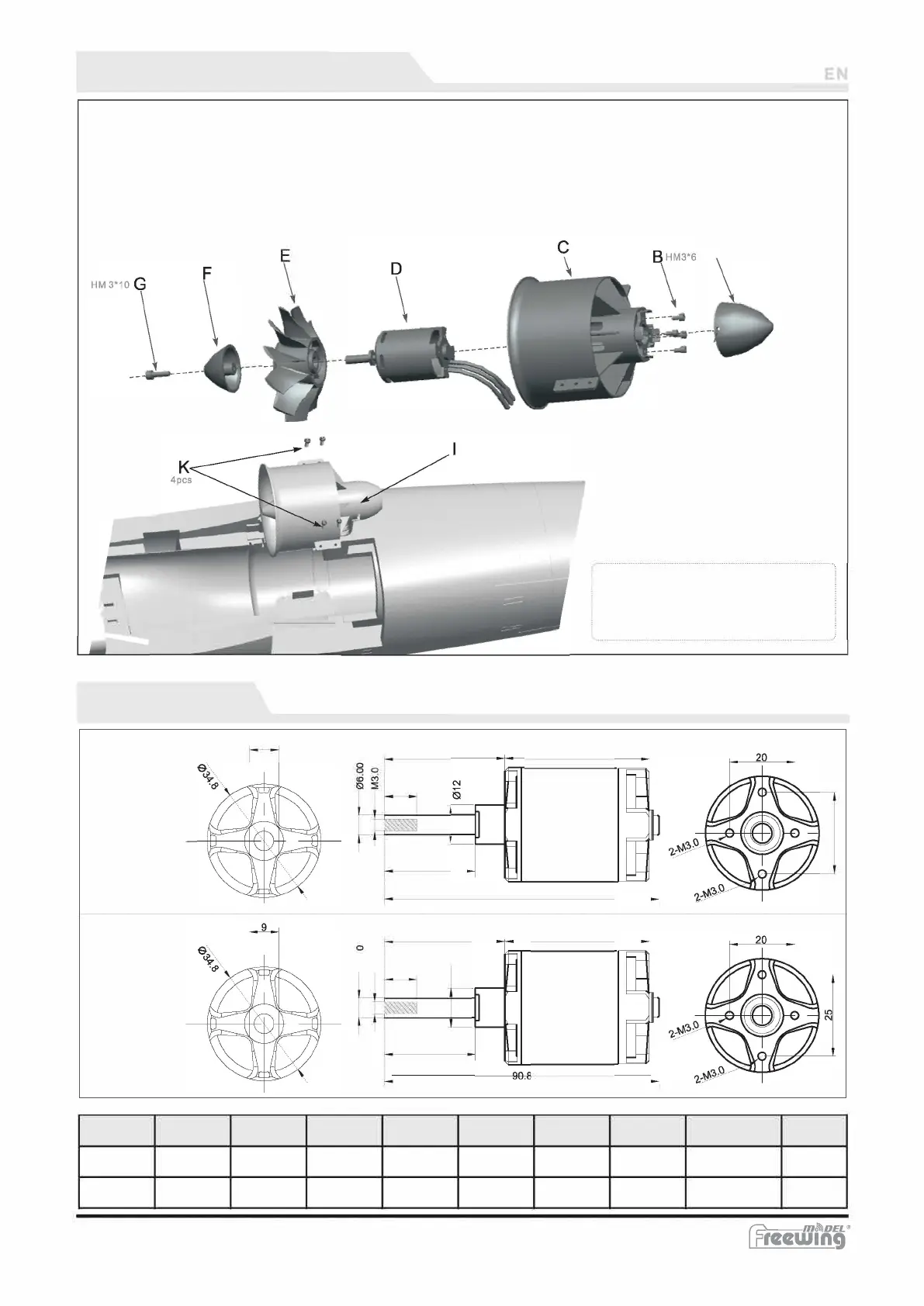 Use 4 screws (K) to secure the EDF (I) to the wood base.