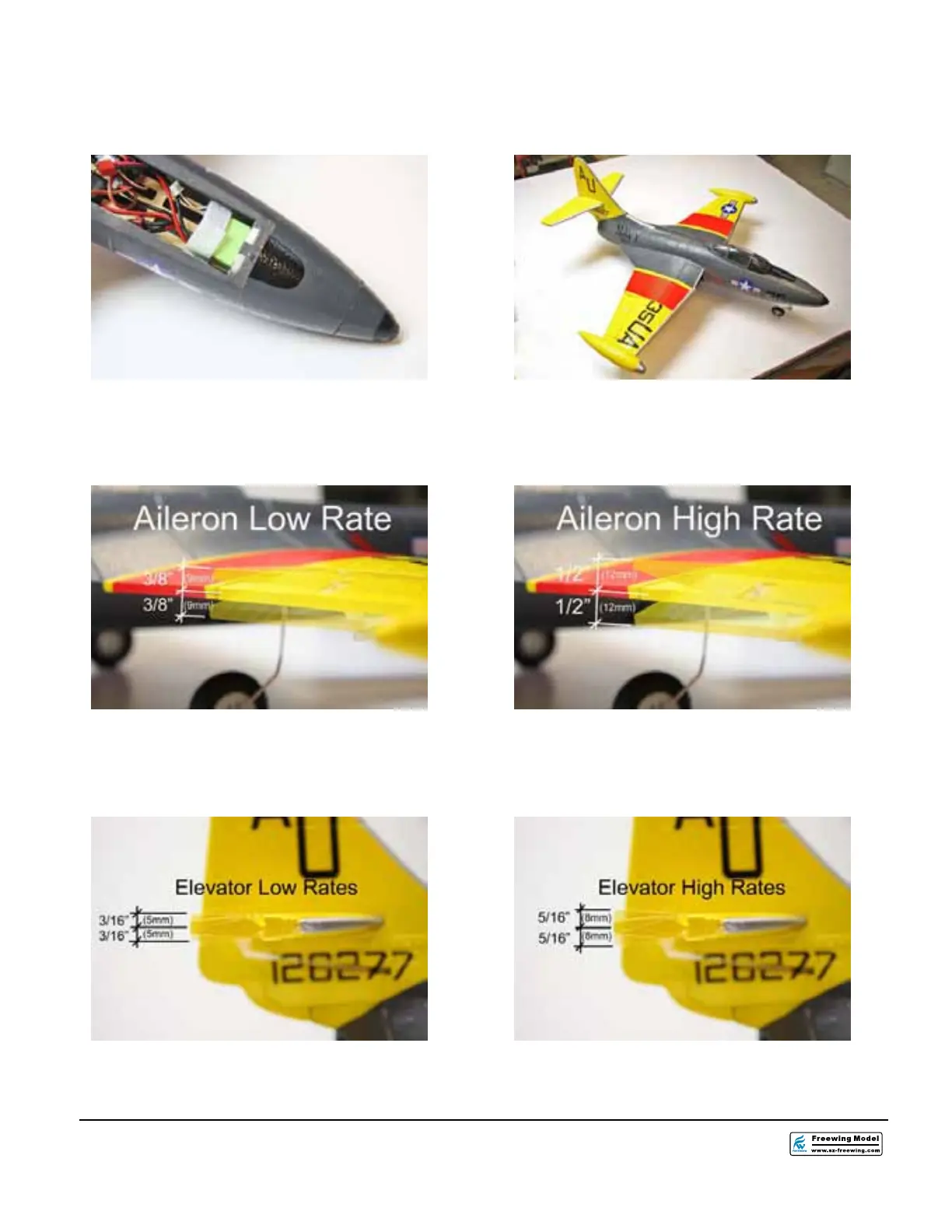 18. Aileron control throws are 3/8” Up and Down on Low Rates. They are 1/2" Up and Down
