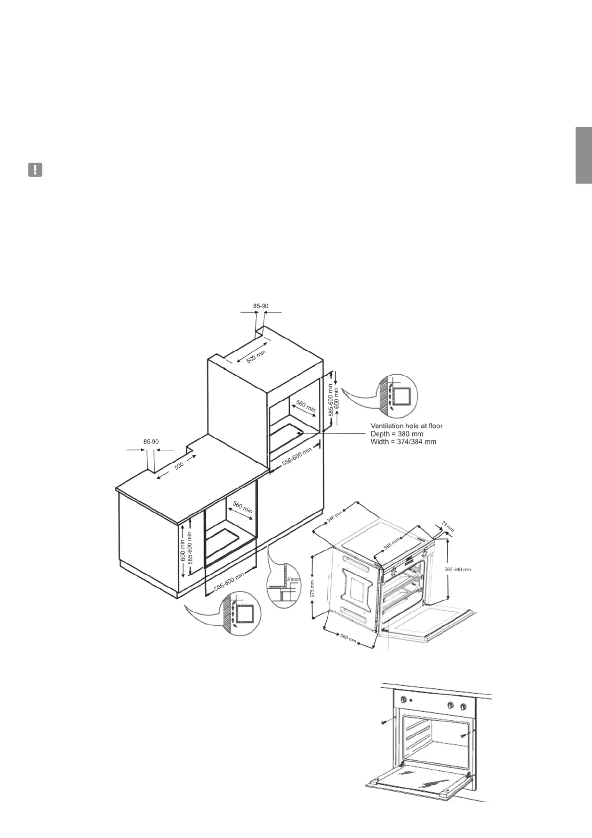 Духовка должна быть установлена, как показано на рисунке, чтобы обеспечить