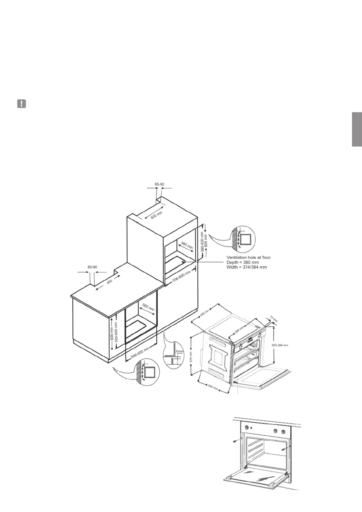 • Стіни які оточують духову шафу повинні бути виготовлені з вогнестійкого