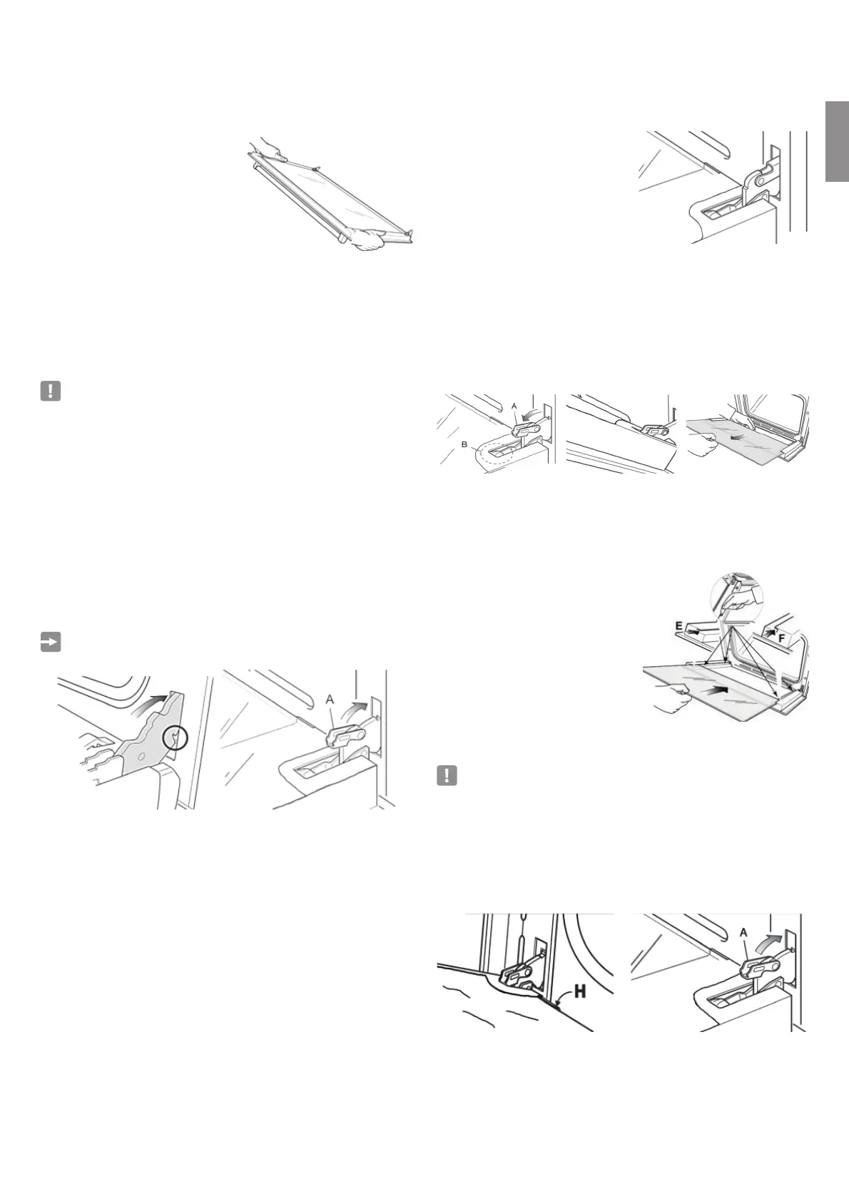 • - Fit the pane into the left E and right F guide rails (Figure 25) and slide up to