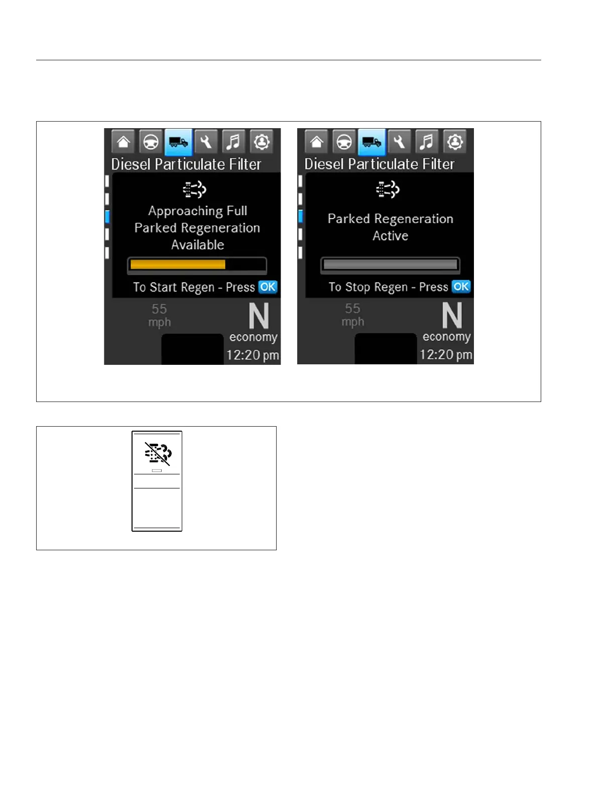 Fig. 13.2, Parked Regen Message Screens