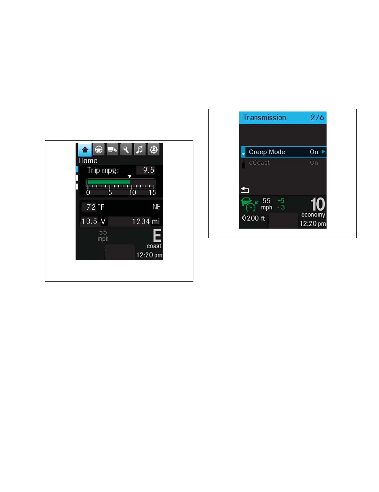 Fig. 14.5, eCoast and Creep Mode On/Off Screen