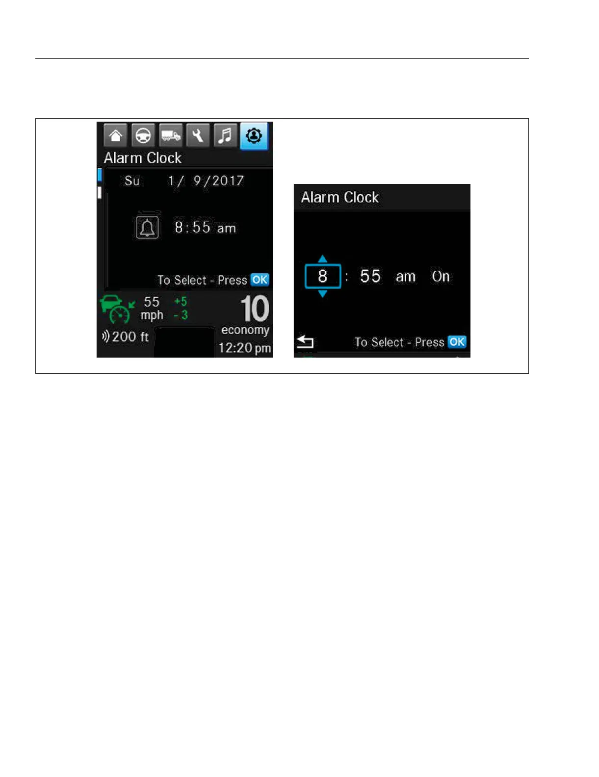 and the cruise control settings screen.