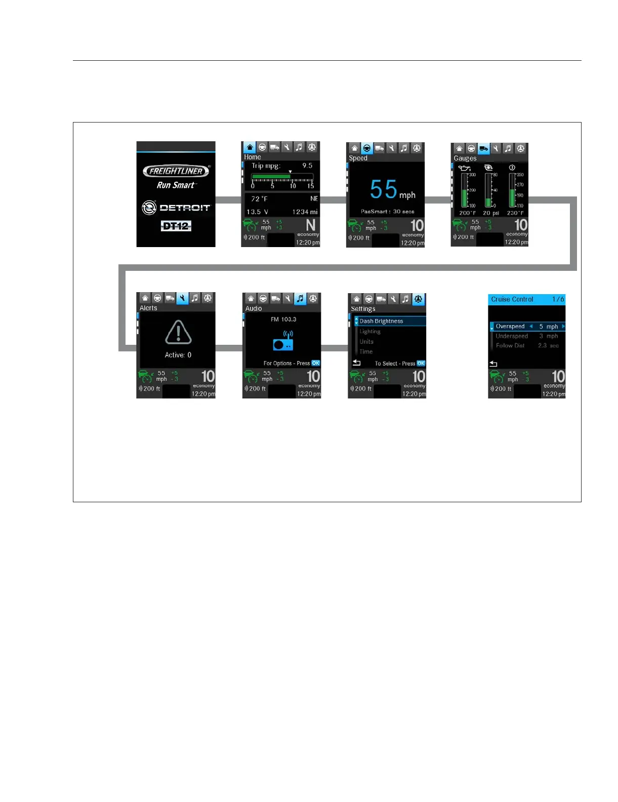 NOTE: Navigate the top-level menu by using the right and left arrow buttons in the left-hand steering wheel switch pod.