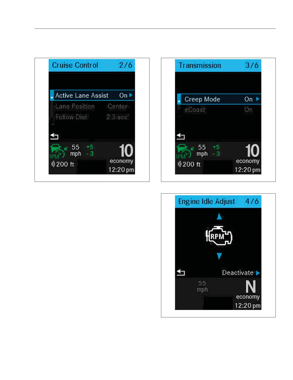 The Optimized Idle screens allow the driver to