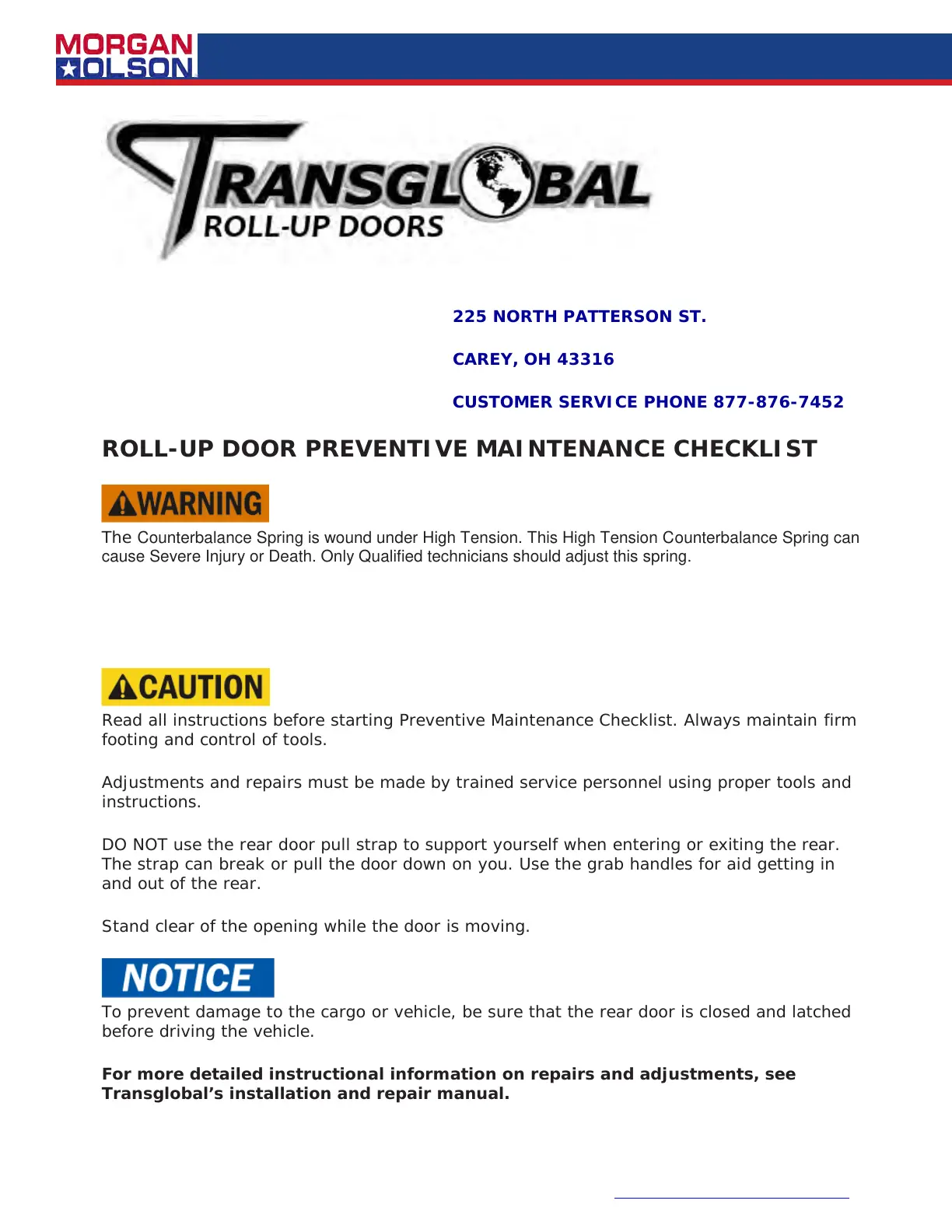 ROLL-UP DOOR PREVENTIVE MAINTENANCE CHECKLIST