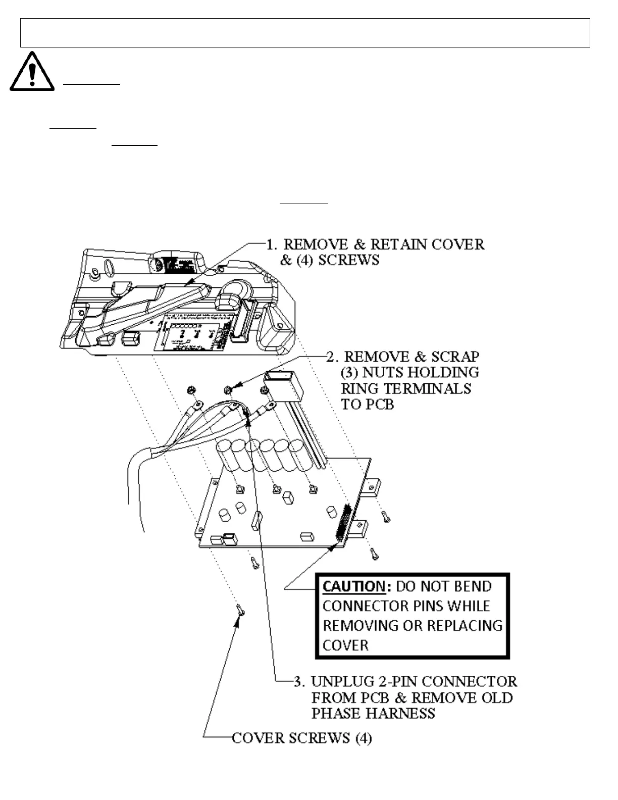 CAUTION: Care must always be taken to install the control cover without bending the connector pins