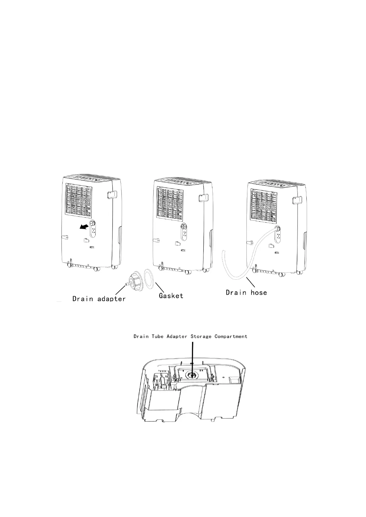 below. (Drain adapter is included in storage compartment on top of water bucket) Once