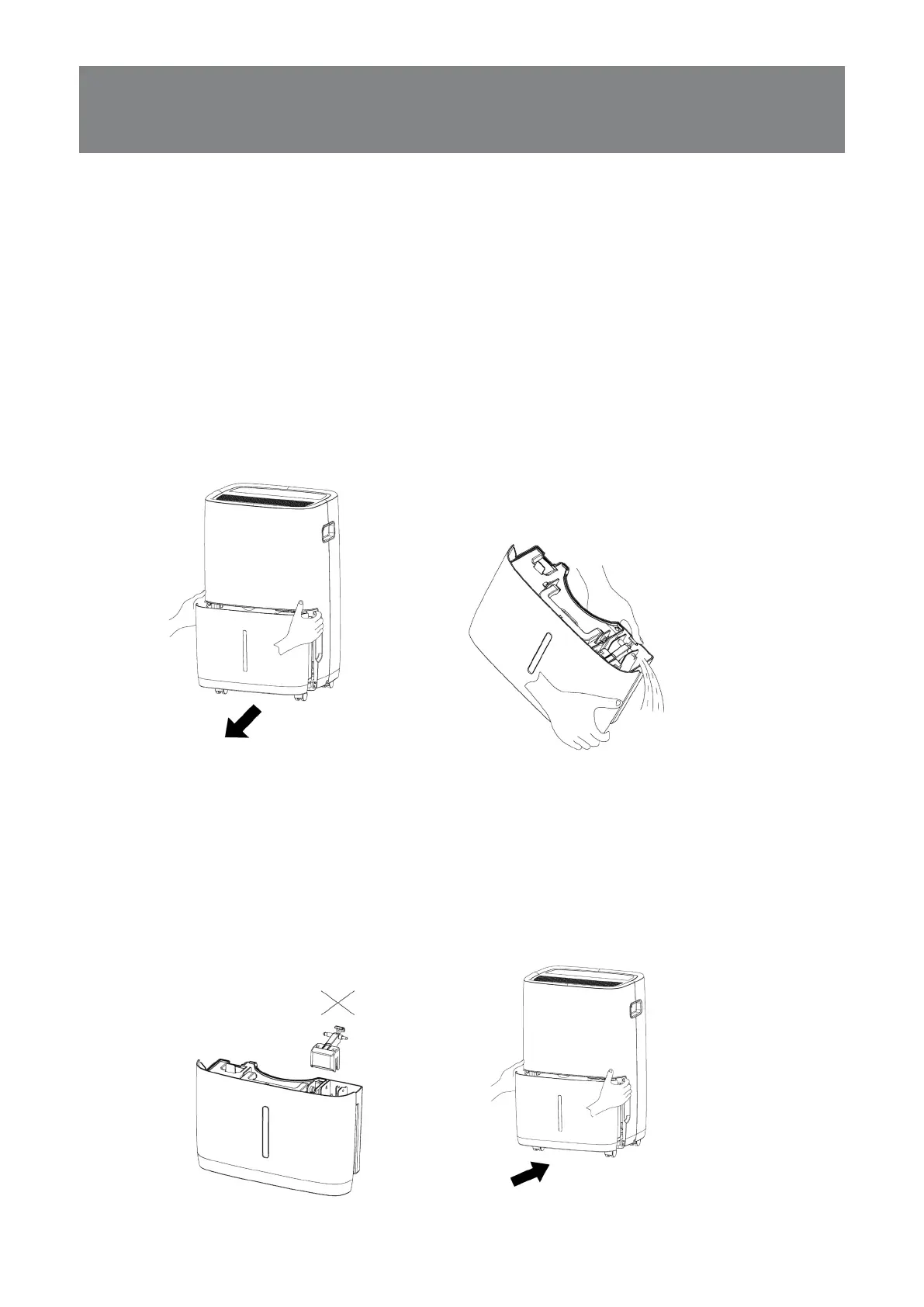 3. When replacing the drainage bucket, press the bucket firmly into place with both hands.