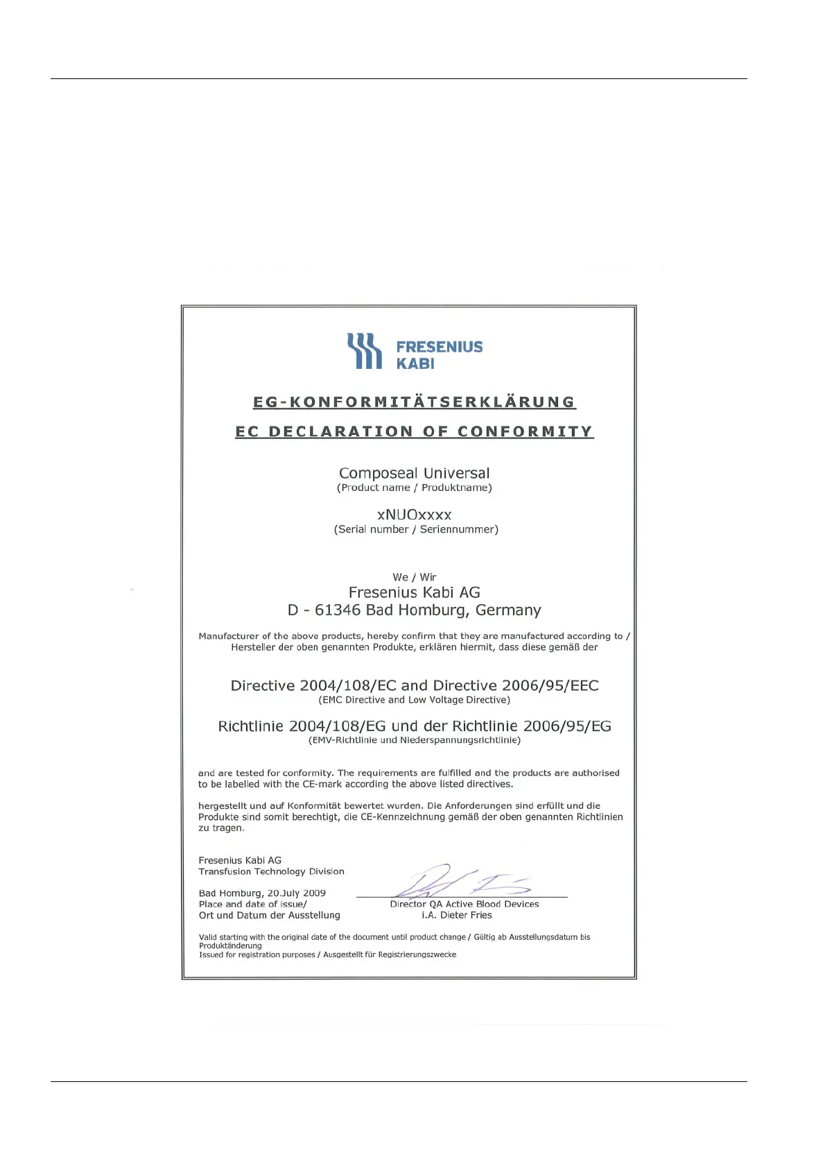 Fresenius Kabi CompoSeal Universal - 10 Certificats; 10.1 Déclaration de Conformité CE