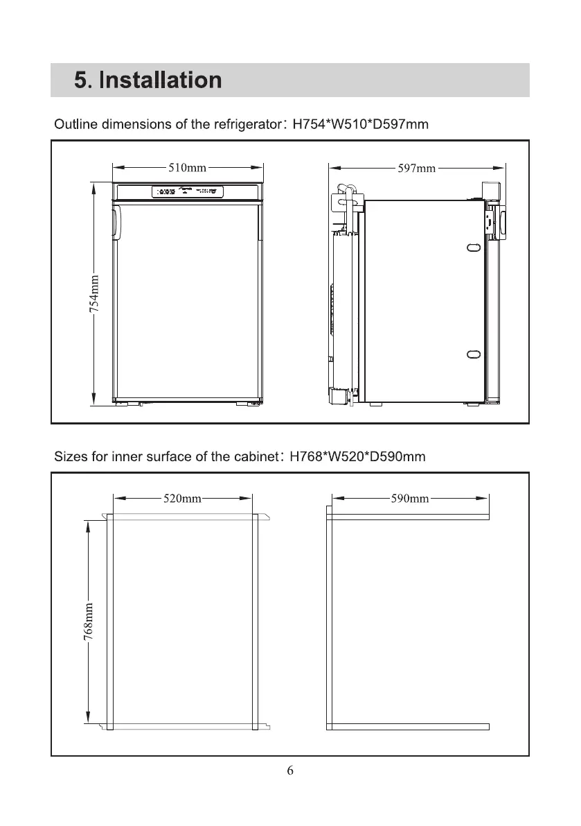 of the refrigerator: H754*W510*D597mm