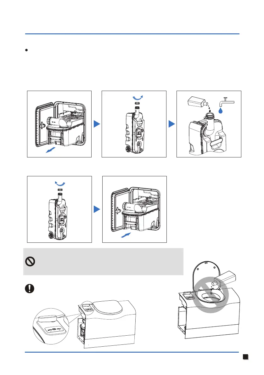 3. Add the stated dosage cleaner to the waste-holding tank, and add 2L of water to the waste-holding