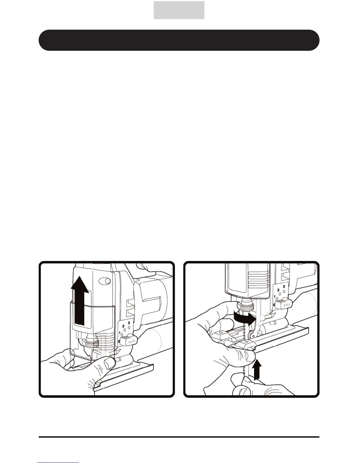 f) Tirer la lame ver le bas pour s'assurer qu'elle est bien fixée en place.