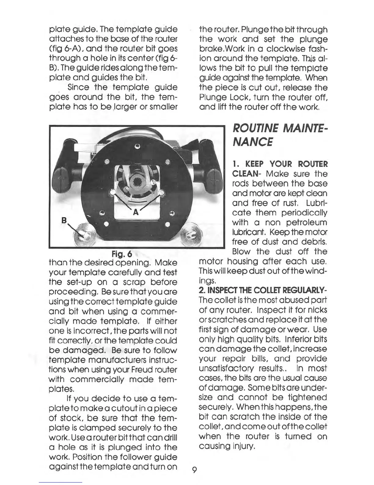 Freud FT2000 - Routine Maintenance; Cleaning the Router; Collet Inspection and Care