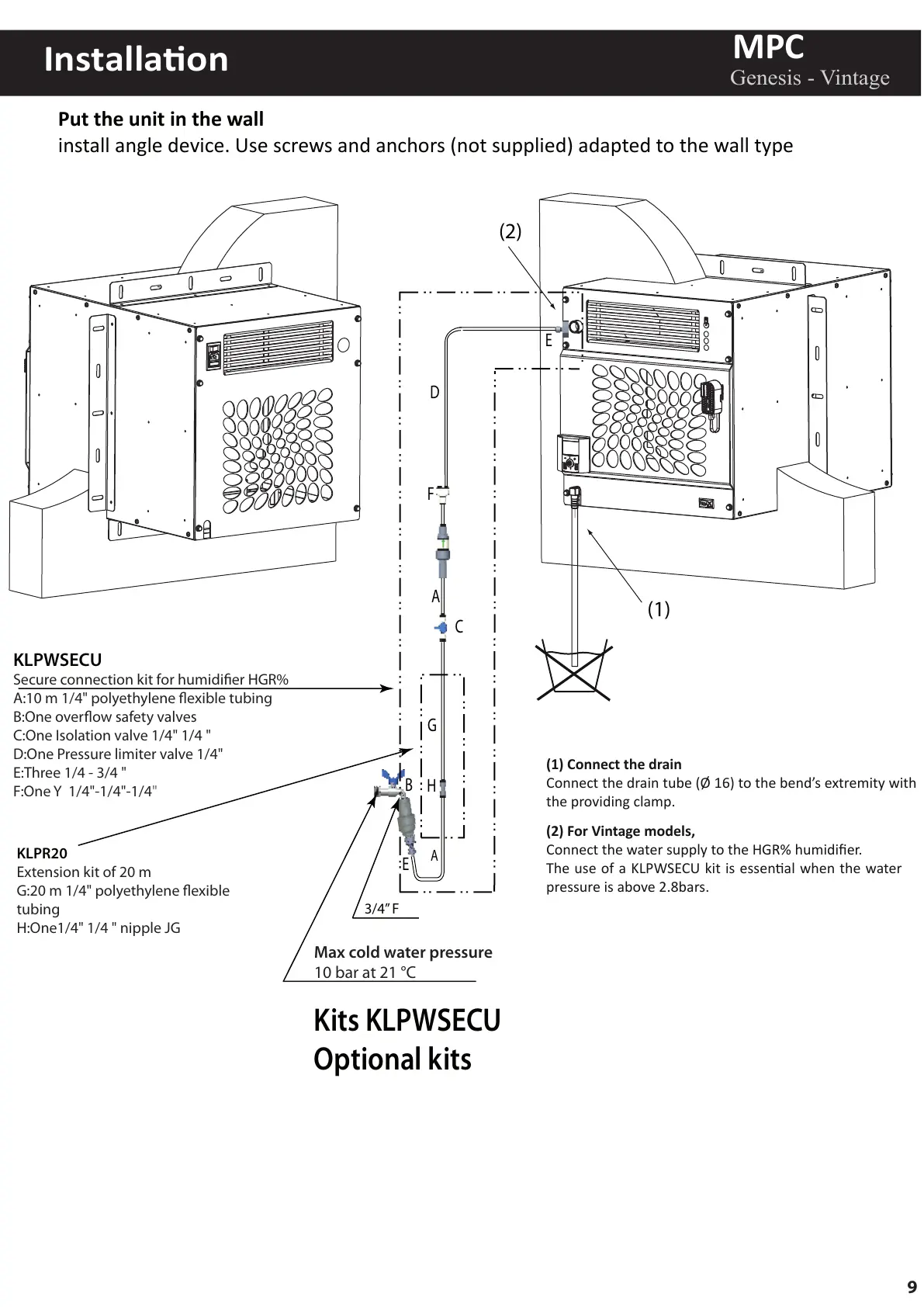 install angle device. Use screws and anchors (not supplied) adapted to the wall type