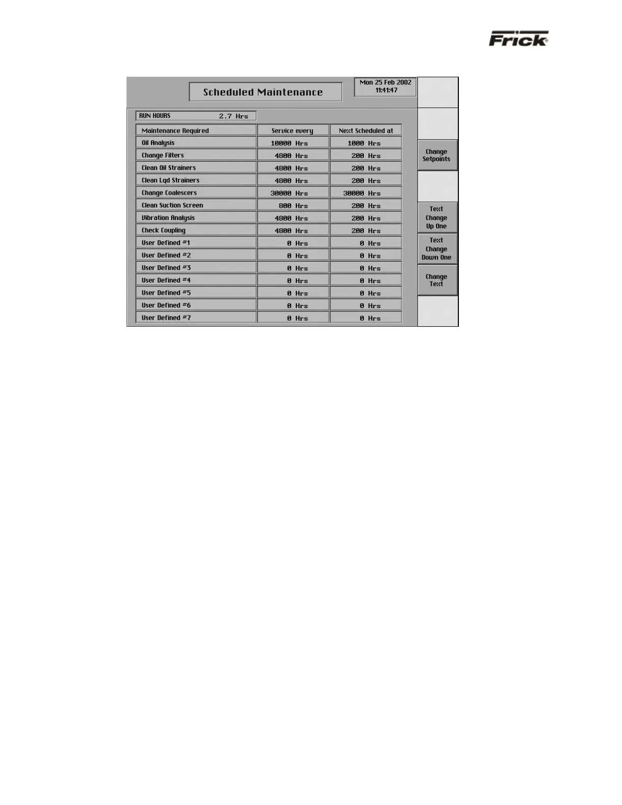 Frick QUANTUM 3 - Scheduled Maintenance Screen