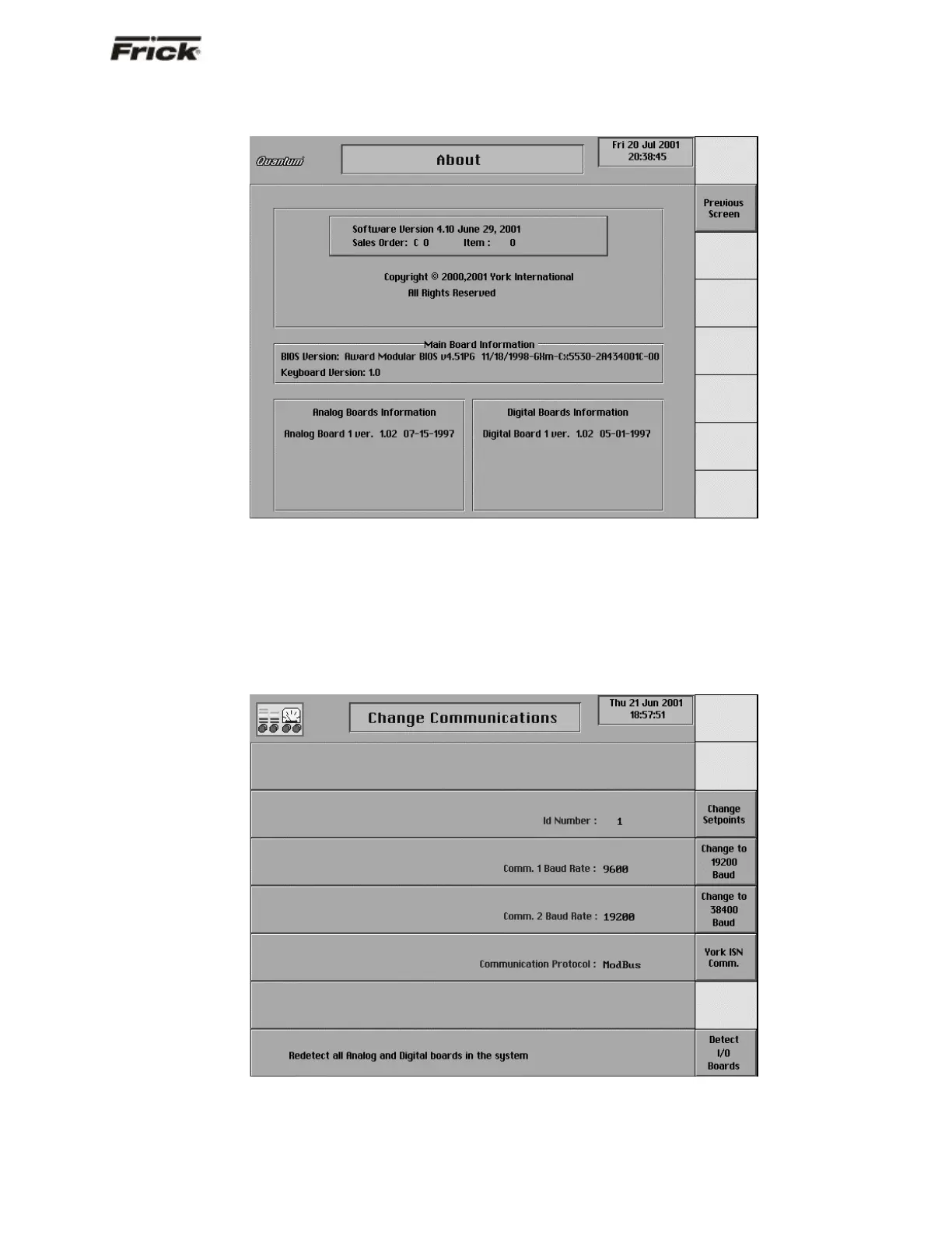 Frick QUANTUM 4 - Additional Service Related Screens; About Screen; Change Communications Screen