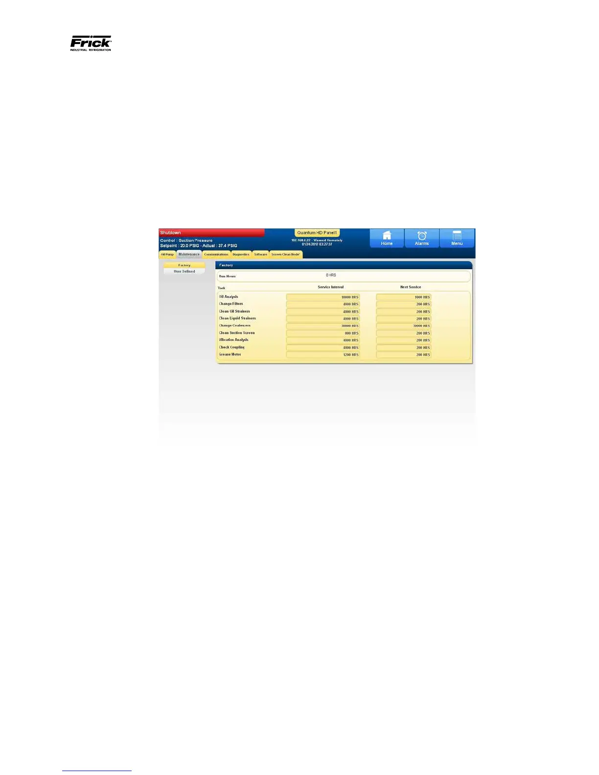 Frick QUANTUM LX Control Panel - Service Screens