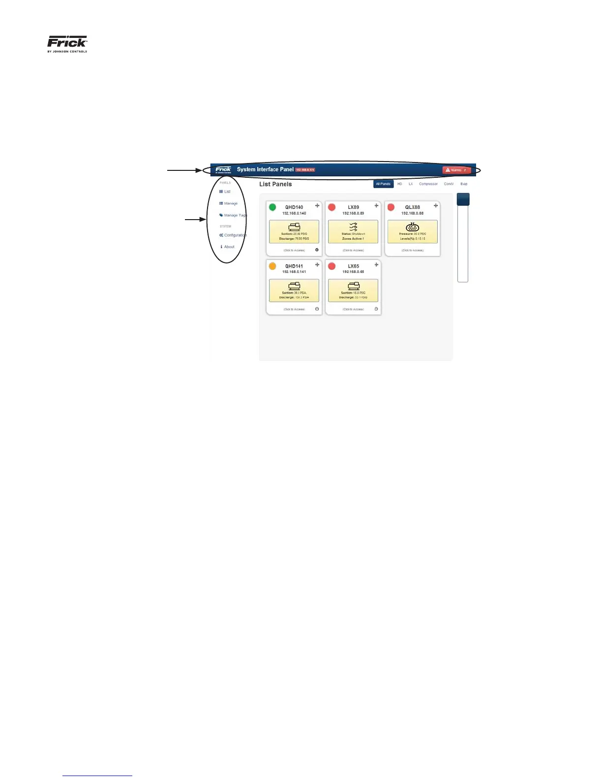 logo, the name “System Interface Panel”, the IP Address,
