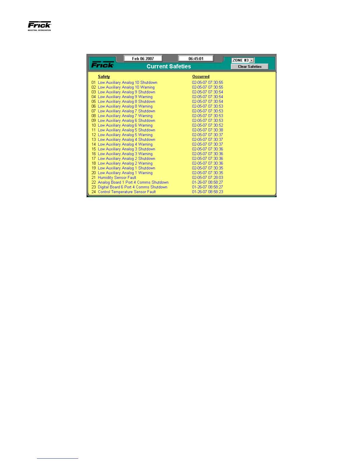 cleared. Clearing the entry on the Current Safeties screen, will