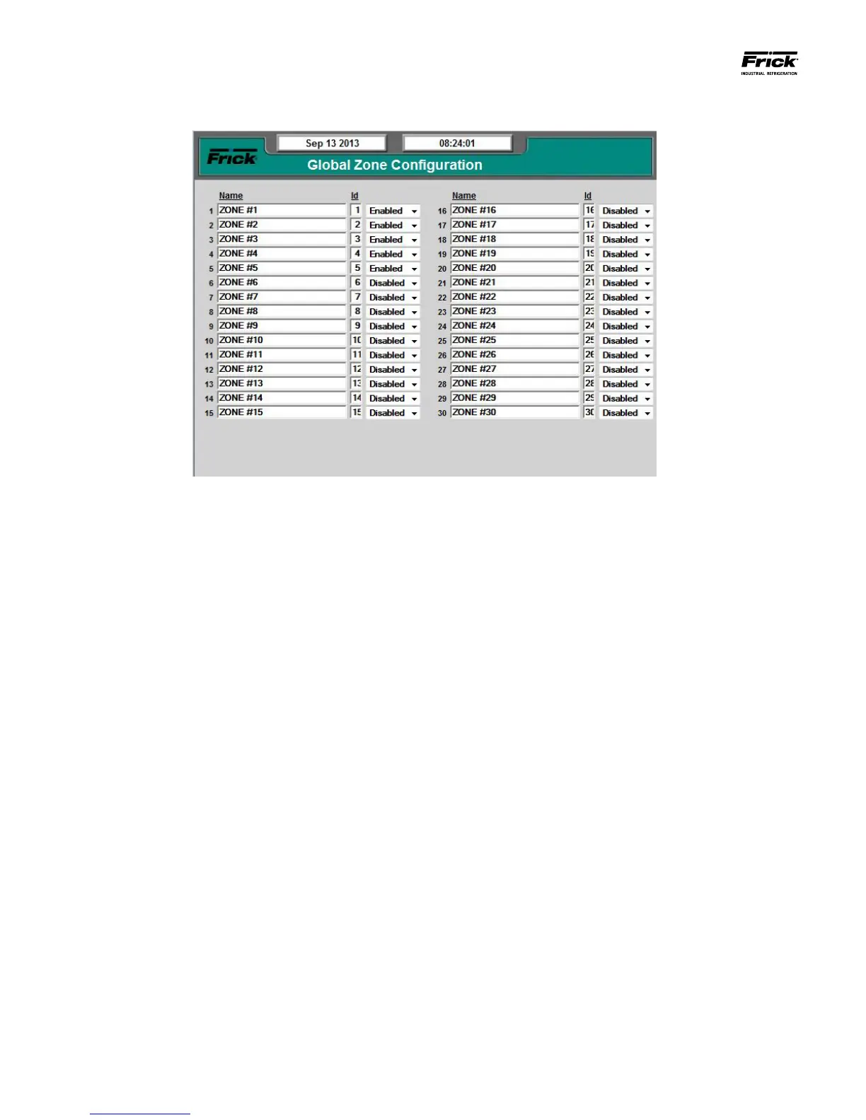 This screen will show all thirty potentially installed Evaporator