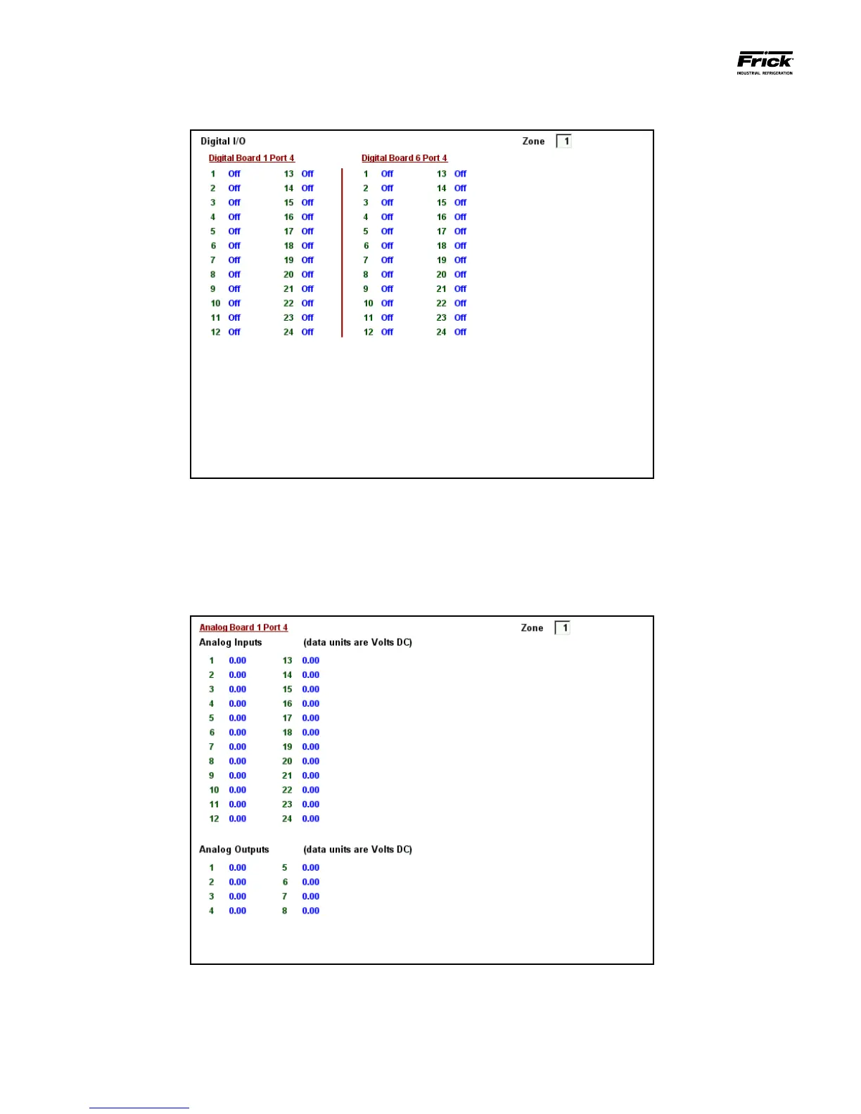 status of all installed analog board inputs and outputs. The top