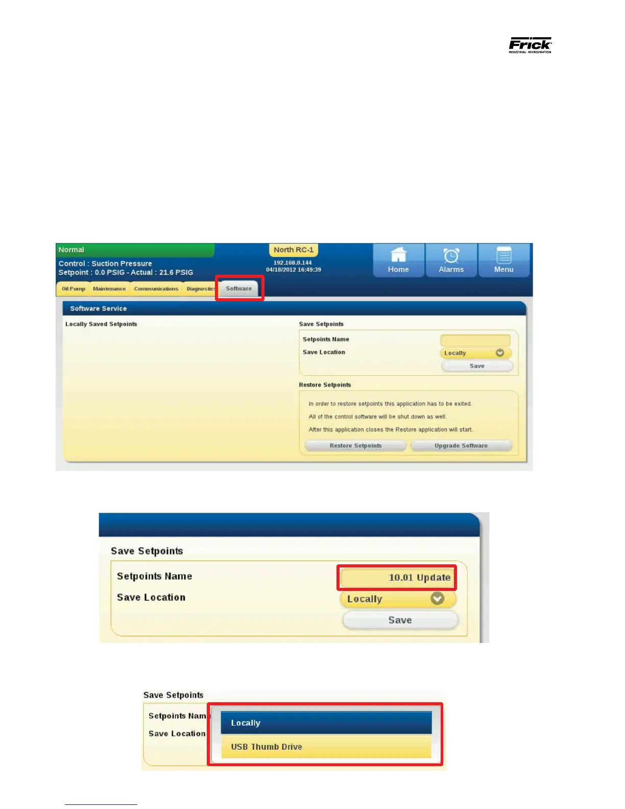 Save Setpoints –To save setpoints the user must be logged
