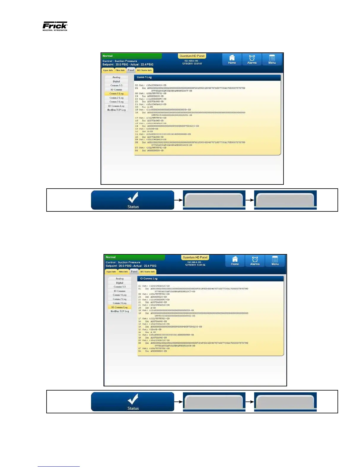 STATUS - PANEL (IO COMMS LOG)