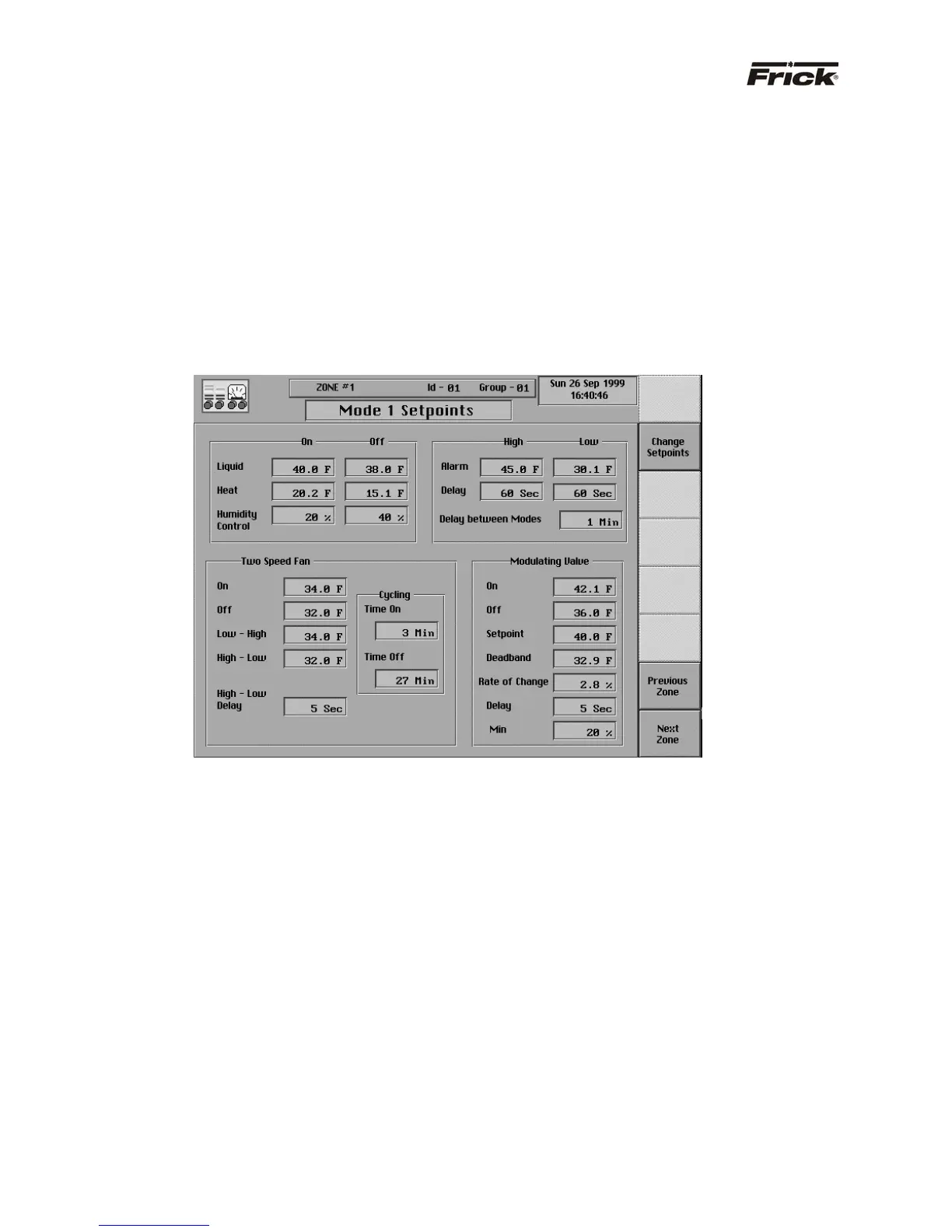 – “MODE 1 SETPOINTS” SCREEN