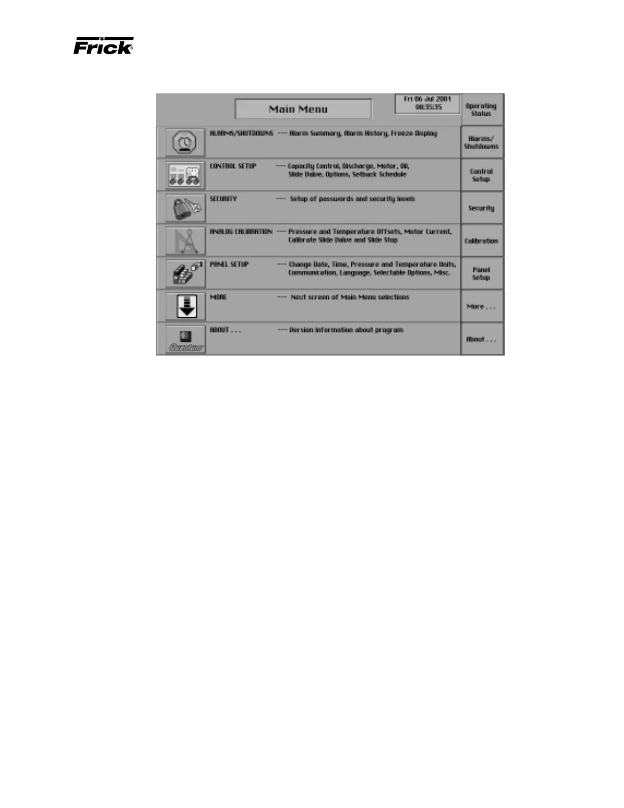 “MAIN MENU” DISPLAY - SCREEN KEY SET