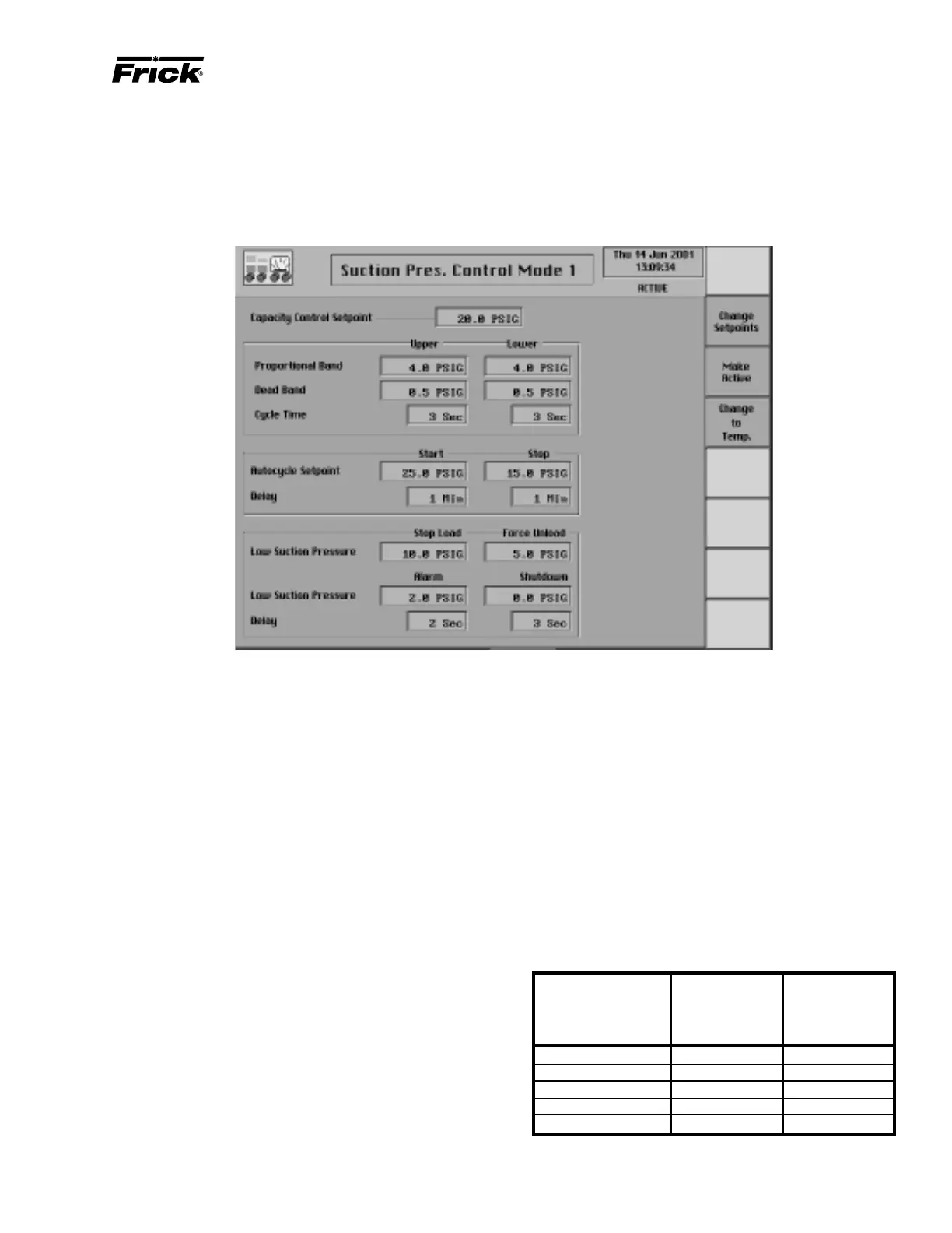 Following is an example of a Capacity Control setpoint screen: