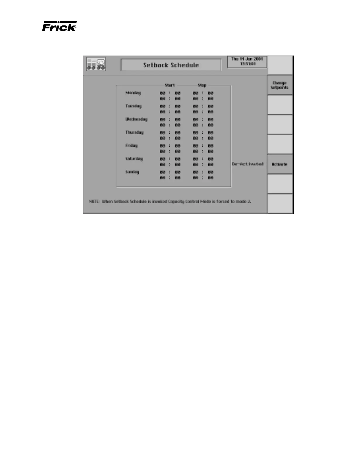 CONTROL SETUP - ”SETBACK SCHEDULE” SCREEN