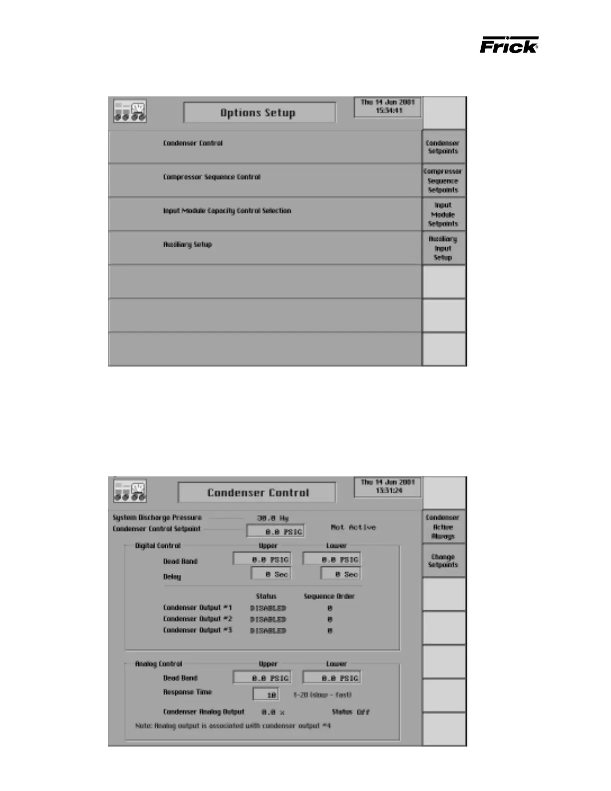 CONTROL SETUP - OPTIONS SETUP - ”Condenser Control” SCREEN