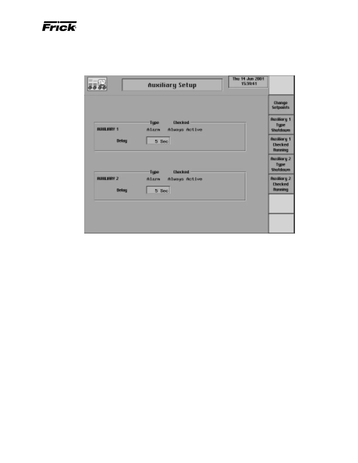 ently an alarm type of auxiliary, this screen key is shown
