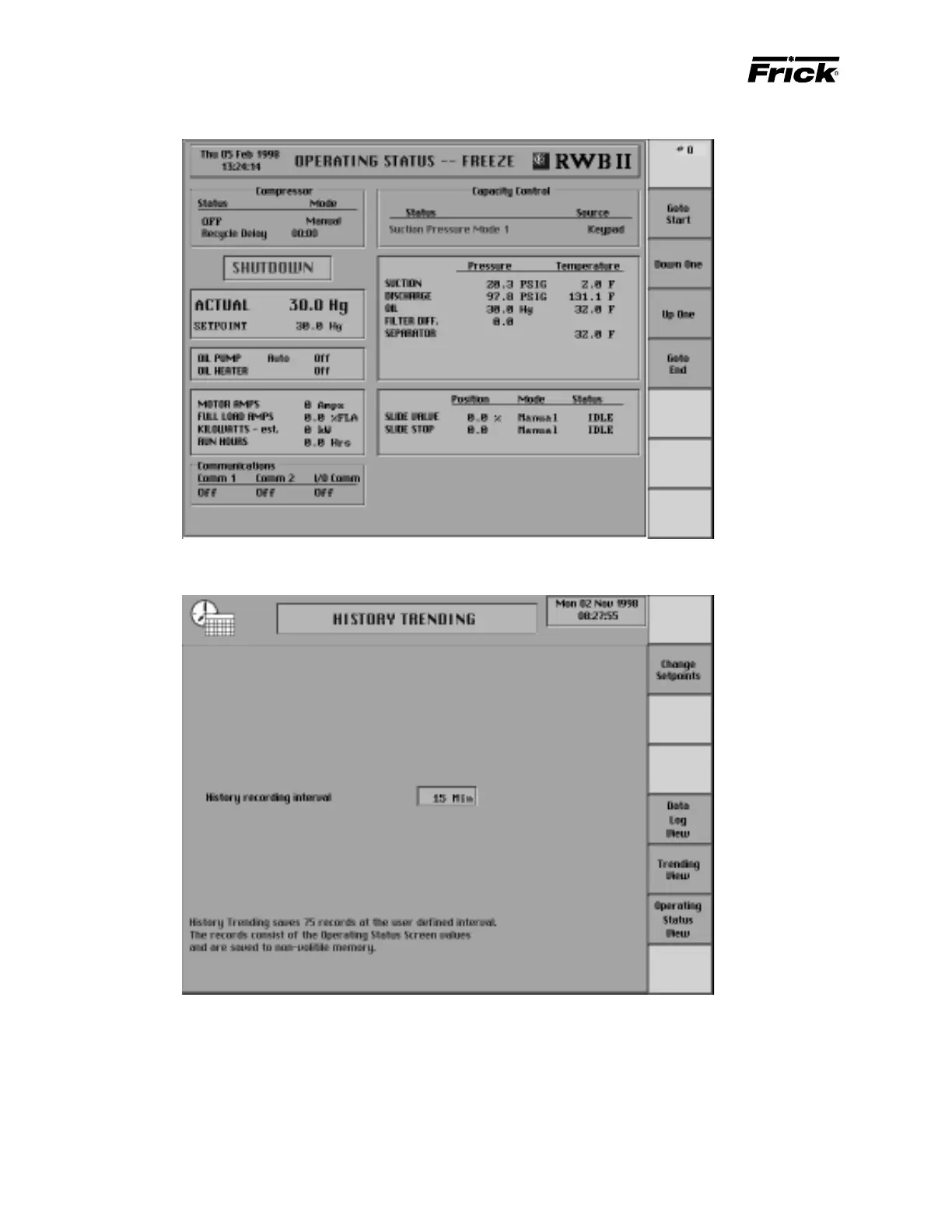 the “Operating Status” screen. History data is stored in