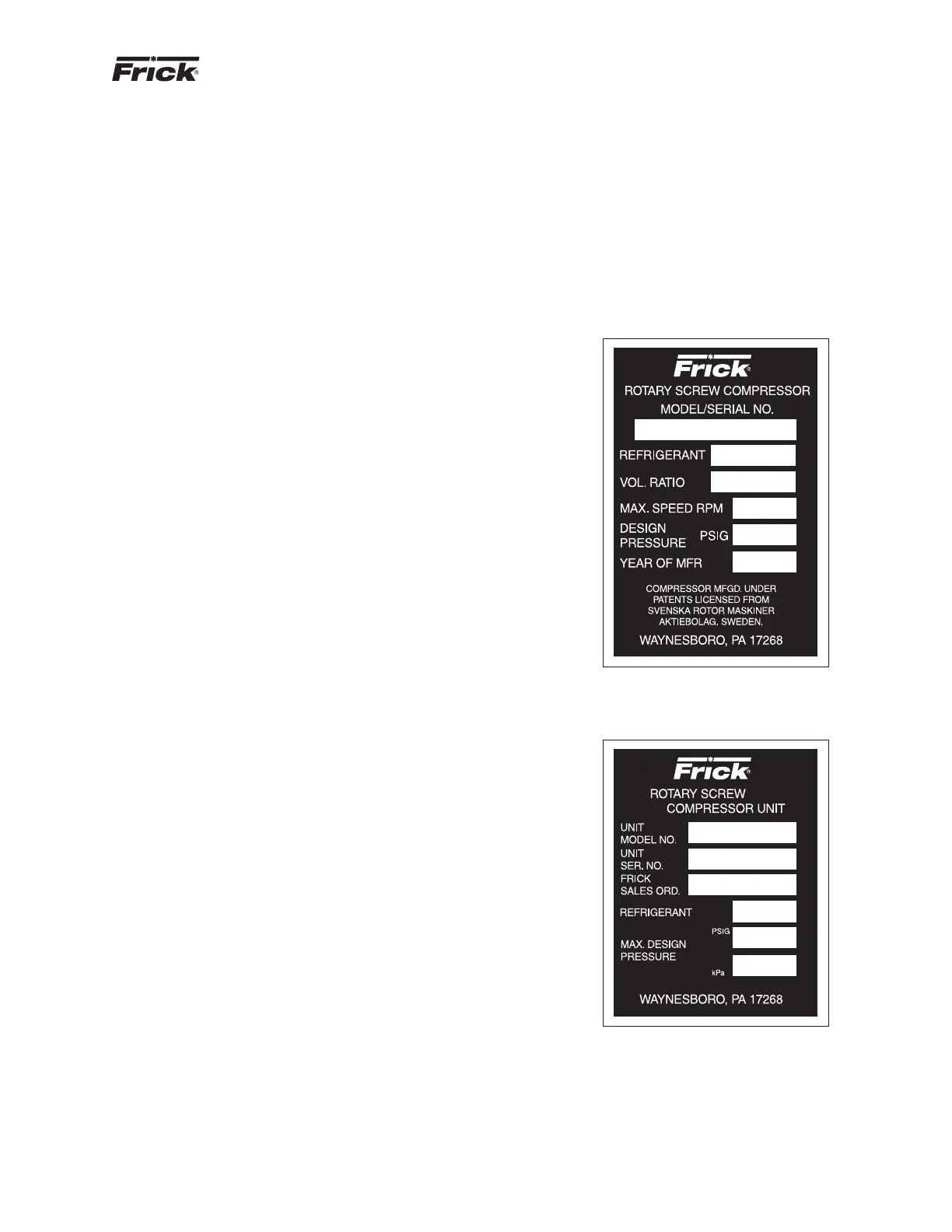 Each compressor unit has 2 identifi ca tion data plates. The