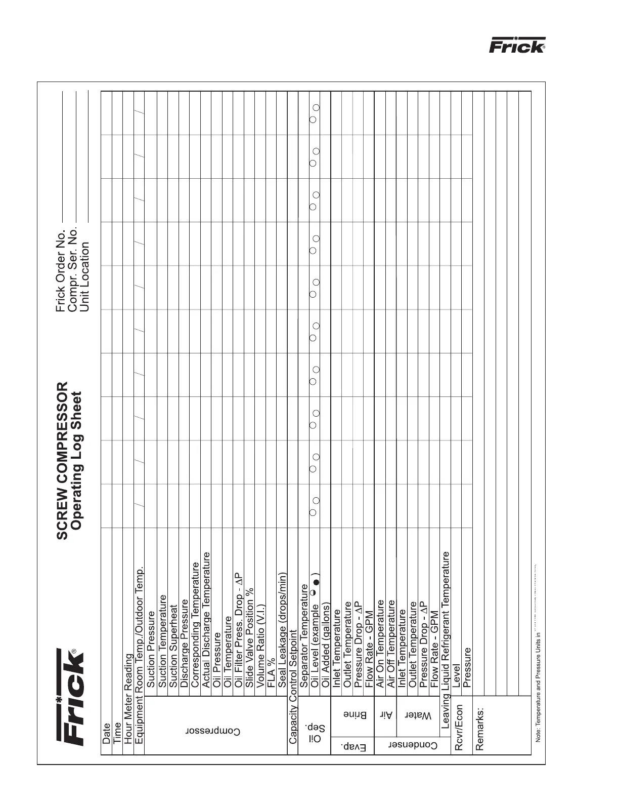 Frick RWB II - Forms; Operating Log Sheet