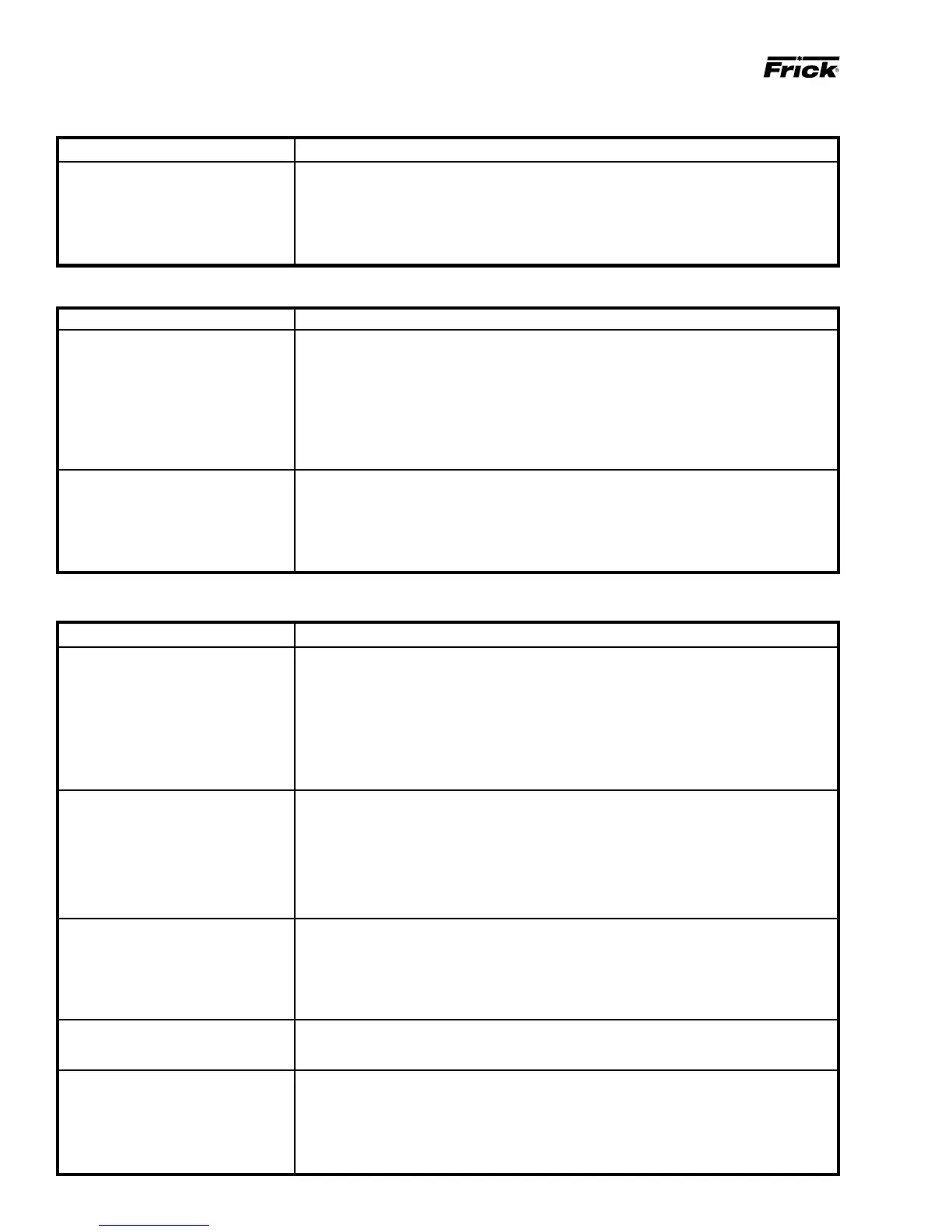 EXCESSIVE NOISE and VIBRATION Bearing damage or excessive wear. CONTACT Frick Factor or Frick Co.