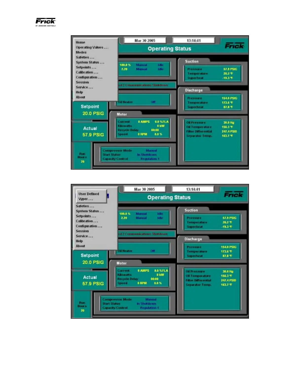 Figure 33 - Home Screen Service Level 2: Press the [Menu] Button then Select Operating Values from the Flydown