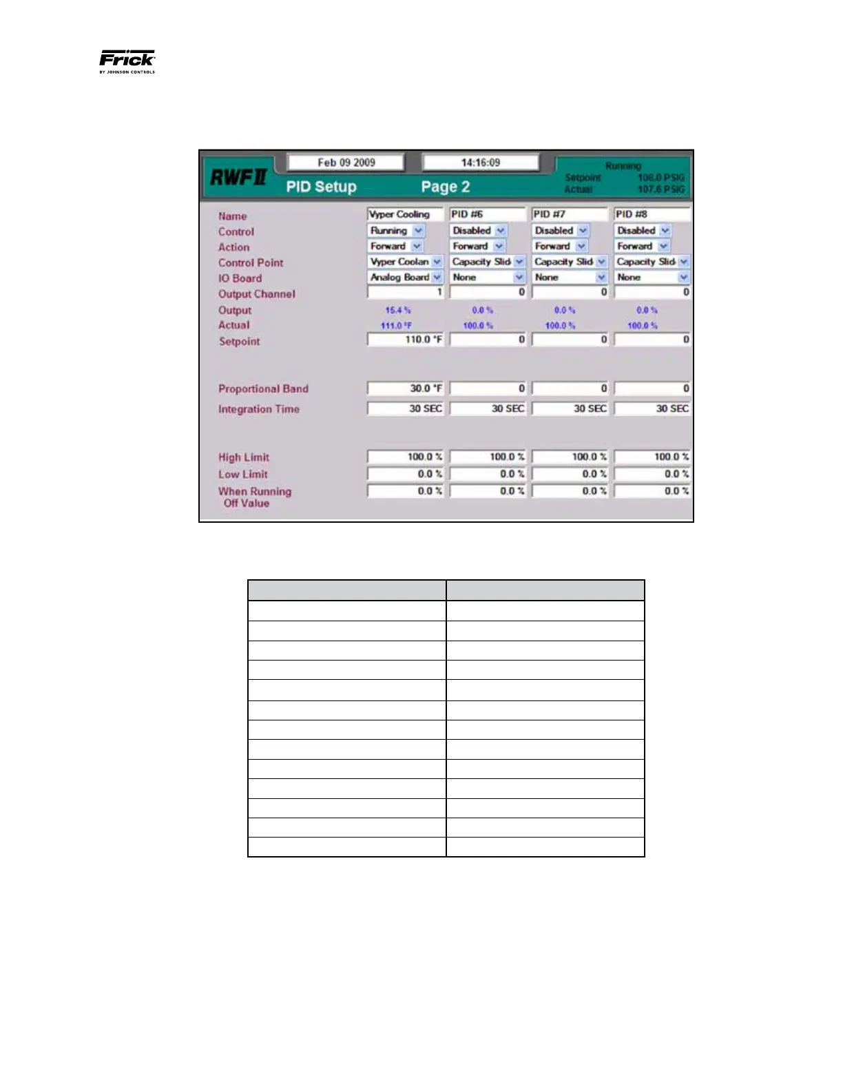 Frick Vyper 305 - Pid Setup
