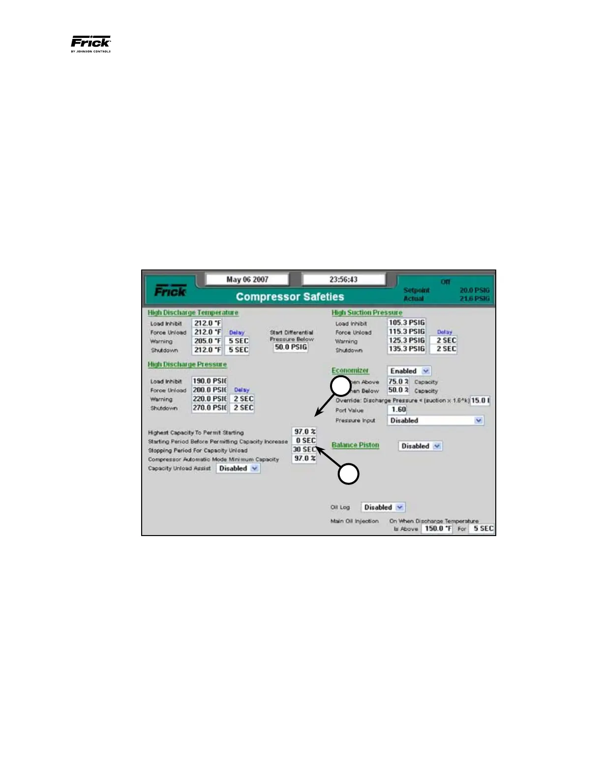 Compressor Safeties Screen.