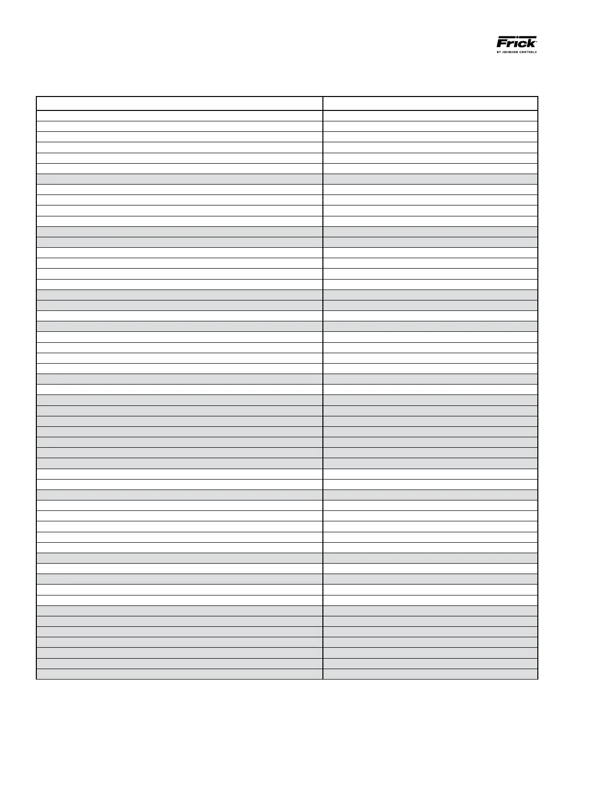 PART DESCRIPTION FRICK PART NUMBER