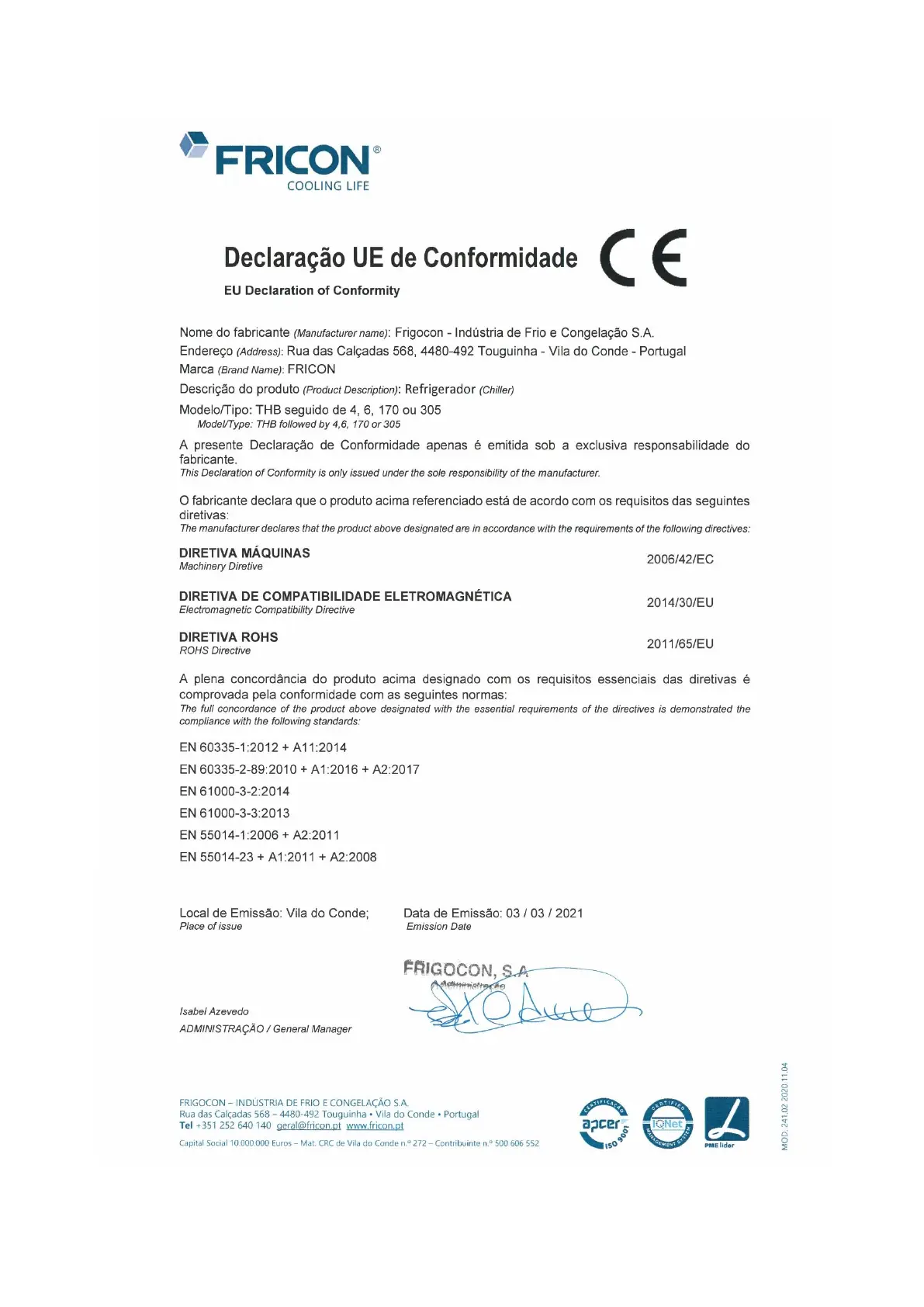 FRICON THB - Declaración de Conformidad de la Línea THB; Declaração de Conformidade Linha THB
