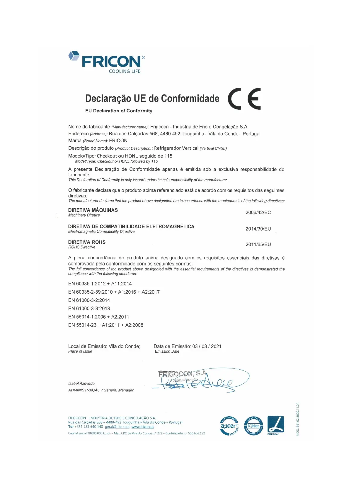 FRICON THB - Declaración de Conformidad de la Línea HDNL; Declaração de Conformidade Linha HDNL; Konformitätserklärung der THG Reihe; THB Line Declaration of Conformity