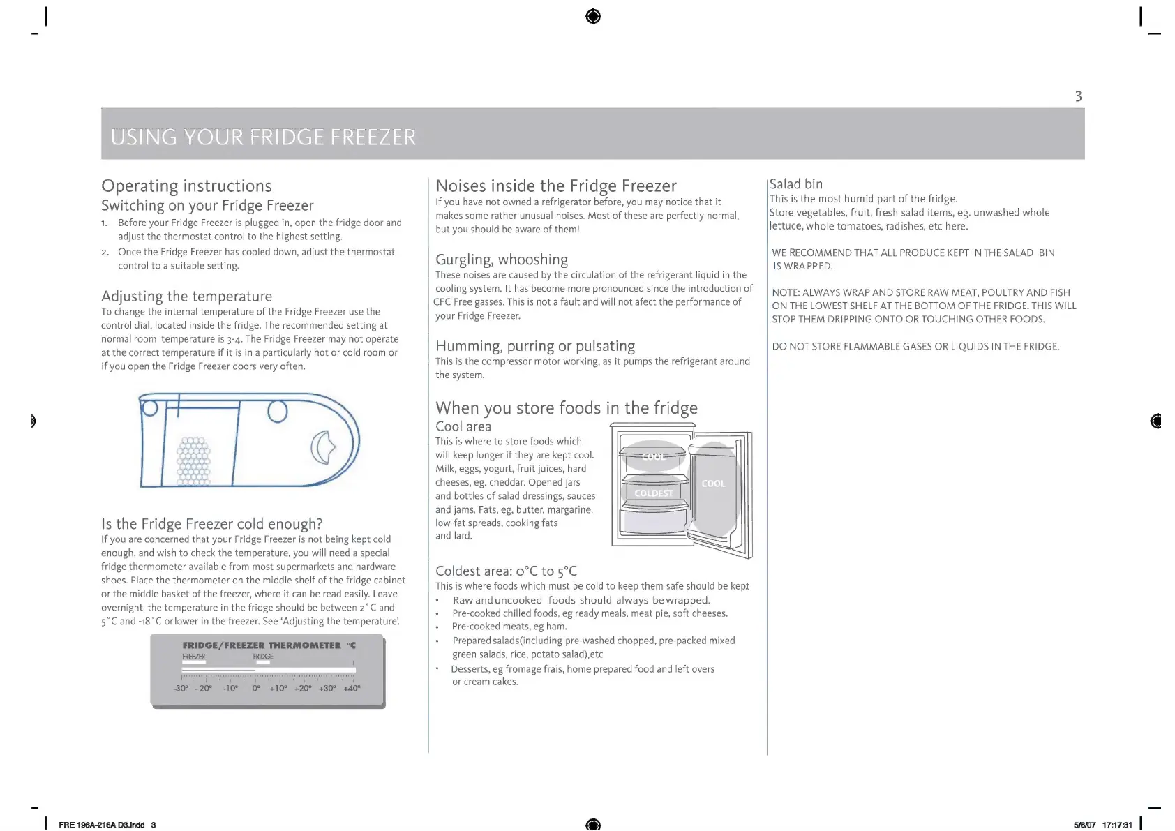 Fridgemaster MC50160 - Using Your Fridge Freezer; Adjusting the Temperature; Noises Inside the Fridge Freezer